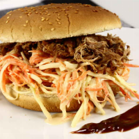Denne gang skal vi have Burger med Pulled Pork eller Pulled Chicken Hjemmebagte burger boller med lækkert mørt kød, salat og gnave grønt.