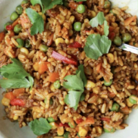 Denne gang skal vi en tur til SyrienMenuen står på:Syrisk ris med kylling og mandler, den traditionelle salat tabouleh med bulgur og persille.Dertil en kold yoghurtsovs med mynte samt hommus og gnavegrønt.